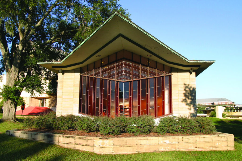 The Danforth Chapel is one of 13 Frank Lloyd Wright-designed structures on the Florida Southern College campus in Lakeland. Photo courtesy of Florida Southern College.