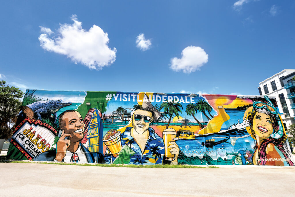 A vibrant mural by David Muir in the Flagler Arts and Technology District (FATVillage), Fort Lauderdale’s creative hub for local art and innovation. Photo courtesy of Visit Lauderdale.